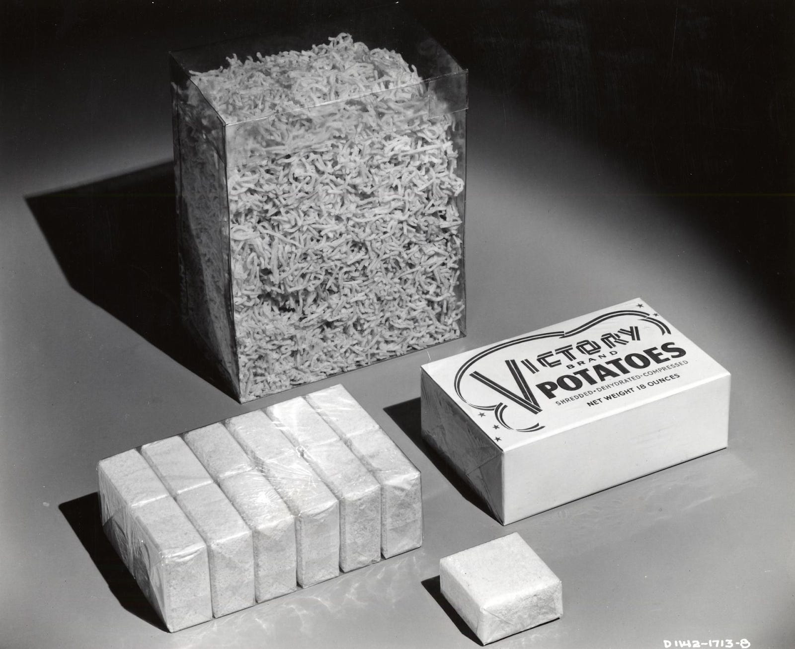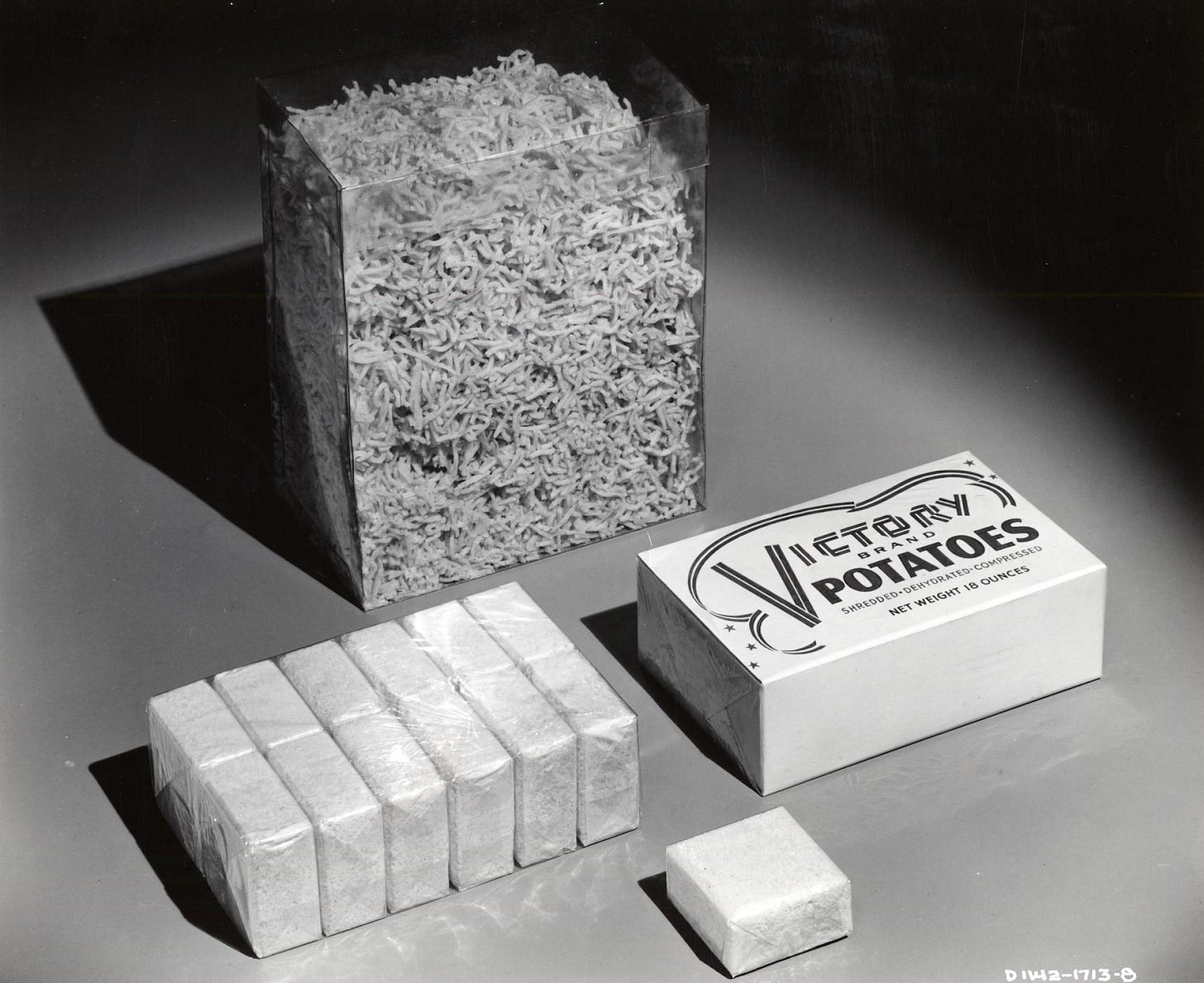 This last factor is the only one that can explain the continued development of instant mashed potato technology. There were no potato-flaking interests during the war to have inertia; the instant mashed potatoes are not superior to their fresh antecedents; there was no ingrained consumer preference for an instant mashed potato product. It is only the desire to reduce time spent on food prep that could create “better instant mashed potatoes” as a commercially viable R&D space in the 1950s.